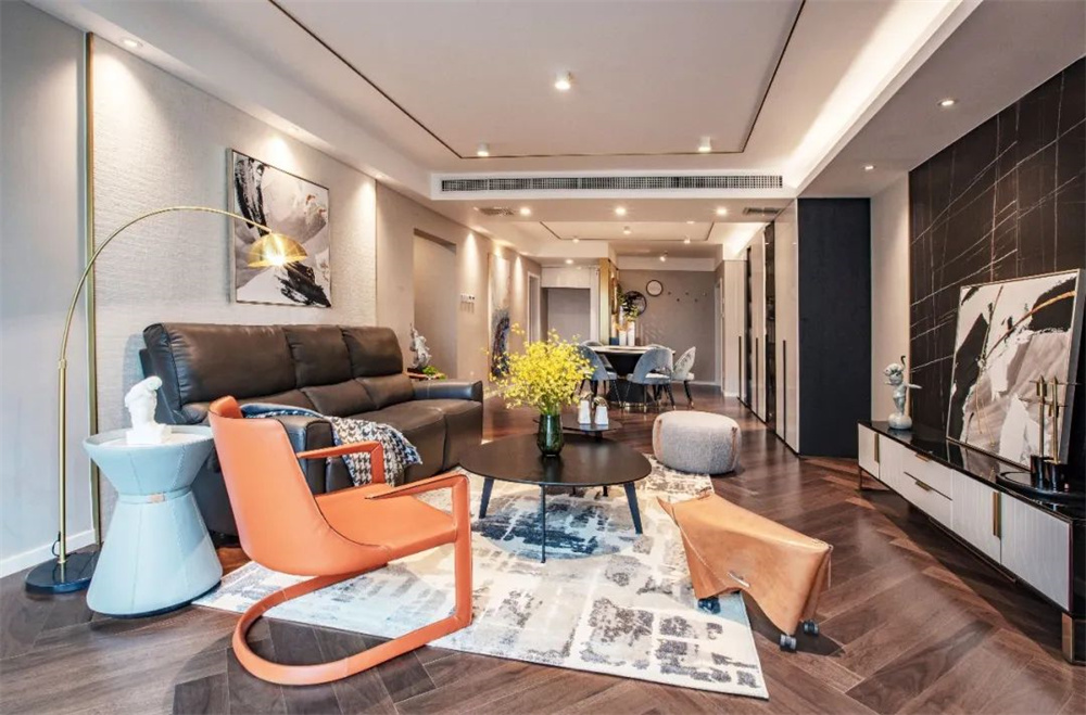 但提到現代簡約風格,很多人會覺得稍顯“冷清”,現代風格+大色塊的設計方案應運而生。胡桃木融入現代風,質感Up!